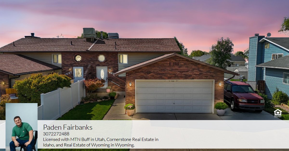 Licensed with MTN Buff in Utah, Cornerstone Real Estate in Idaho, and Real Estate of Wyoming in Wyoming.